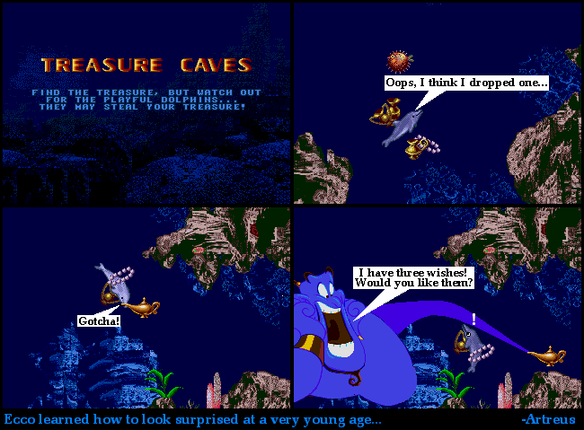An overall weak-ish comic, but I did it as a tribute to the wide-eyes. They may be old, but they're still funny. The genie sprite from Aladdin needed a lot of touching up, and I didn't appreciate that much at all...