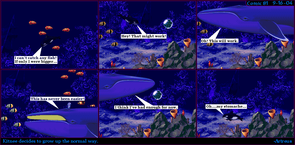 Heh, this is funny! Poor lil Orca, eyes are bigger than his stomach. :p